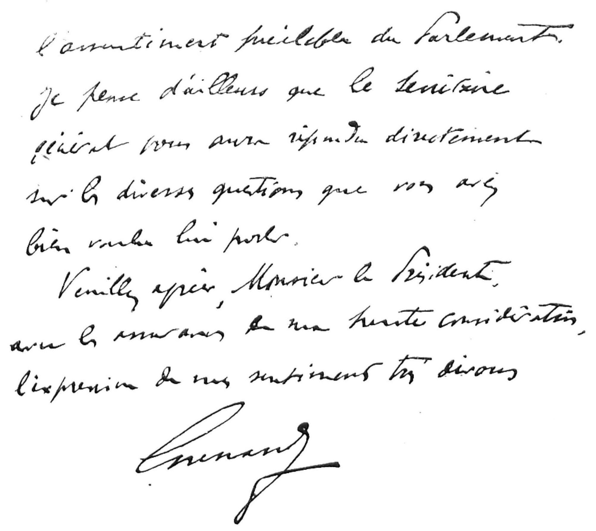In reference to your request for a money advance, I am informed by Mr. Berthelot, with whom you have already discussed this matter, that the President of the Council deeply regrets not to be able to advance such a large sum, for the manner in which the French budget is voted does not permit a large sum to be expended for a definite item, without the previous sanction of Parliament. Moreover, I believe that the General Secretary will answer you directly on the various questions which you have addressed to him.