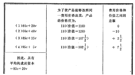 这里我们可以看到:具有平均构成的资本100镑生产的商品,其费用价格是115+(15/19)镑,而不是以前的110镑。[单位]商品的平均价格会不会因此而提高呢?