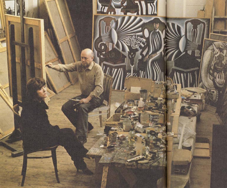 | Boris Messerer paints a portrait of his wife, the famous poet Bella Akhmadulina. (circa 1980s) |