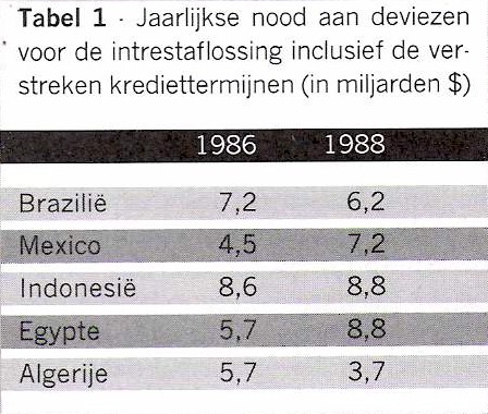 Er is vanzelfsprekend een reëel verschil tussen de gestegen schuld van de bedrijven in de imperialistische staten, de gestegen schuld van die imperialistische staten en de gestegen schuld van de Derdewereldlanden (en die van enkele niet-kapitalistische landen zoals Polen, Joegoslavië en Hongarije). De eerste zijn namelijk meer solvabel dan laatstgenoemde. De verhouding tussen de schulden en de lopende inkomsten is veel nadeliger voor de Derdewereldlanden dan voor de imperialistische bedrijven (en gedeeltelijk ook voor de gezinnen in de imperialistische landen met hun toegenomen schulden). De Derdewereldlanden moeten de intrest en het geleende kapitaal in buitenlandse munt terugbetalen. Hun eigen munt, aangetast door de inflatie, is in het algemeen niet convertibel in munten van de imperialistische landen, op de eerste plaats de dollar. De banken berekenen dus de terugbetalingcapaciteiten van de Derdewereldlanden op basis van de verhouding tussen de schuld en de inkomsten afkomstig van hun uitvoer. Die verhouding is sinds het begin van de jaren tachtig verslechterd, vooral na de recessie van 1980-1982 en de ineenstorting van de grondstoffenprijzen.