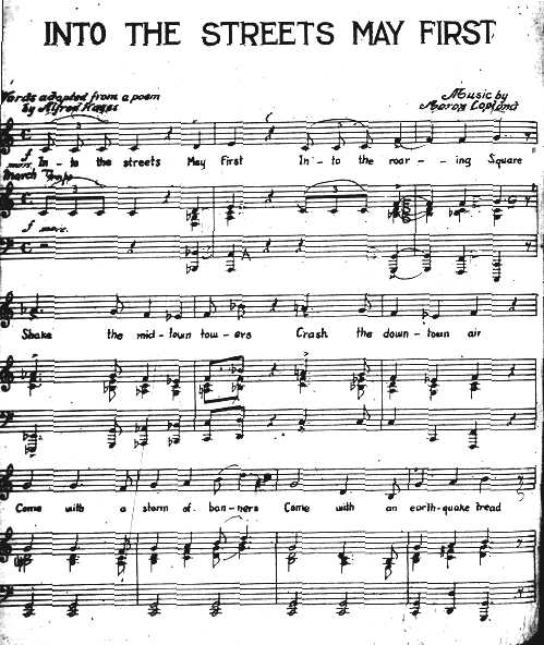 Aaron Copland, Into the Streets May First—sheet music page 1.